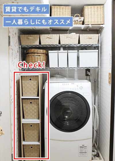 幅・奥行30センチ程度の隙間はボックスを活用