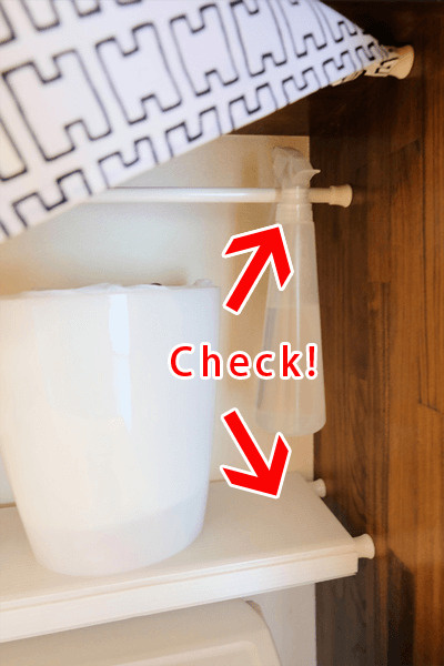 作り付けの棚がなくとも、たった一本でも突っ張り棒を取り付ければ、掃除用のボトルだってコンパクトに収納できますよ。
