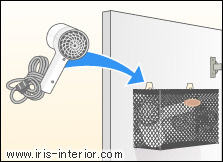 「フック+カゴ」を使ってドライヤーを収納