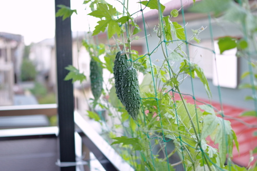 日差しを和らげて涼をとれる、ゴーヤやアサガオをネットで育てるのも◎