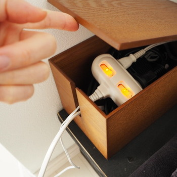 温もりを感じる木製のケーブルボックスに収納