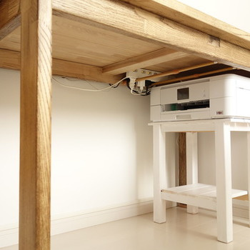 テーブルの下にプリンタも一緒に収納しておけばさらにすっきりしますね。
