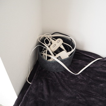 一か所にコード類を集めても、上部が開いている入れ物だと結局ごちゃついた様子が丸見えになってしまいます。