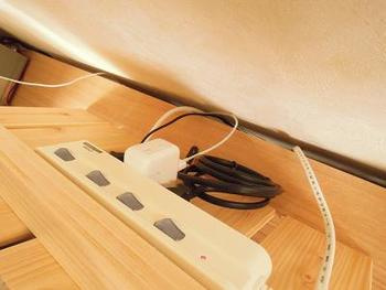 こんな風にすのこにコンセントタップを取り付けて、下側からコンセントをさすようになっています。