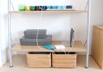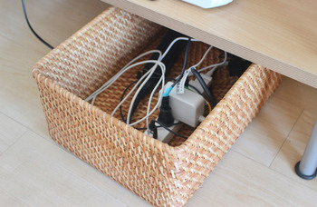 充電していないときは、コード自体を籠にしまっておけば、目立ちません。